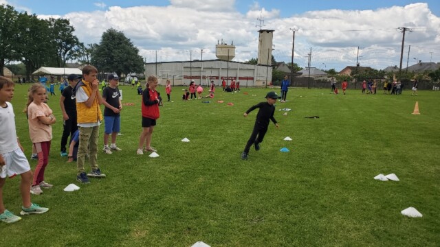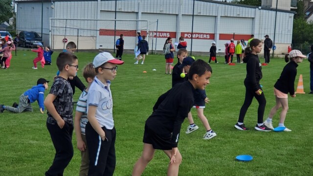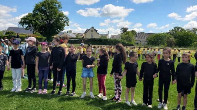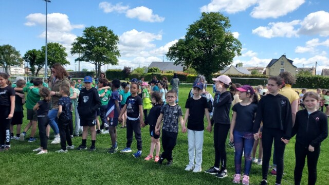 Ensemble, les élèves du CP au CM2 ont participé à une journée sportive sur le thème des Jeux olympiques avec leurs camarades des écoles du secteur de Cossé le Vivien.