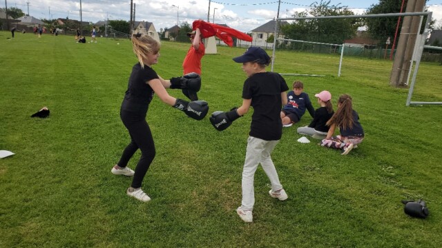 Puis, sous le soleil et encadrés par les élèves de 5ème du collège St Joseph, ils ont participé à différents ateliers et découvert différents sports : break dance, hockey sur gazon, escrime, biathlon, boxe, cecifoot, fléchettes…
