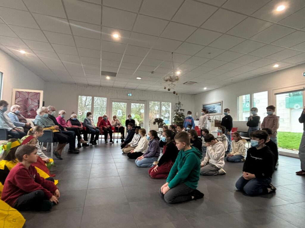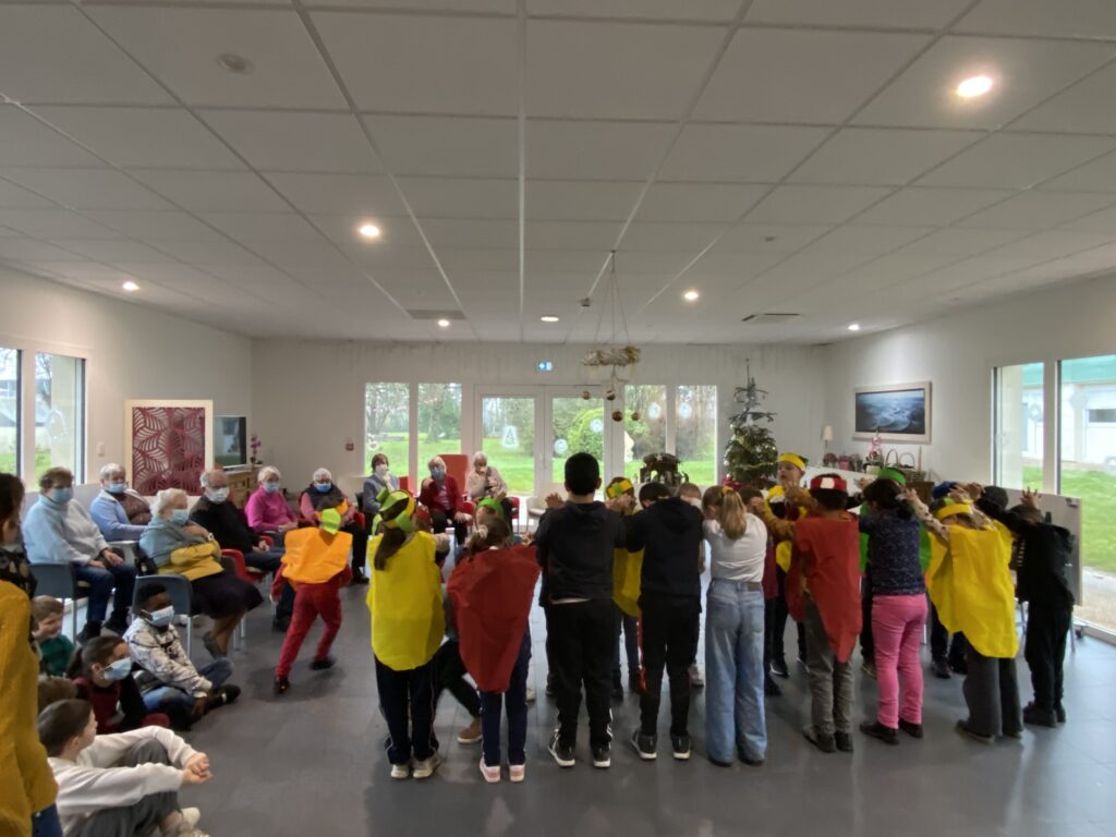 Les élèves de CP-CE1 de Pauline et de CM1-CM2 de Sophie se sont rendus au Mottais le 12 janvier. Après l’échange des vœux pour la nouvelle année, chaque classe a présenté sa danse de l’arbre de Noël aux résidents. Cet échange entre générations est toujours un moment très apprécié de tous.
