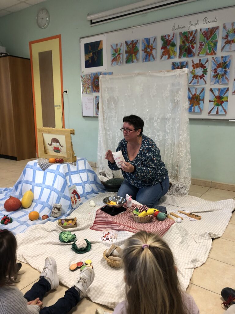 Lors de la semaine du goût , nous avons eu le plaisir d’accueillir Sarah qui nous a conté l’histoire d’une petite souris malicieuse et gourmande qui rentre dans une cuisine .