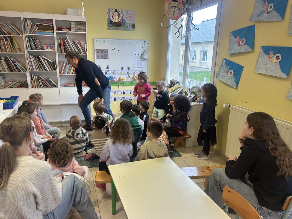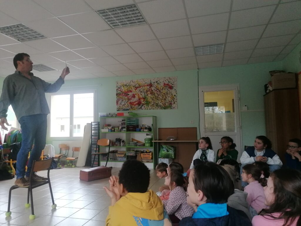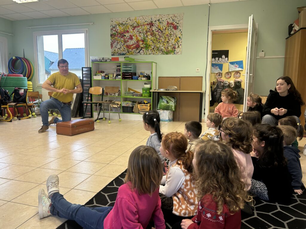 Thierry Mousset est venu passer une journée entière à Ste Marie avec sa célèbre valise d’où il a sorti malicieusement ses histoires racontées avec beaucoup d’humour , de mimiques et de dynamisme.