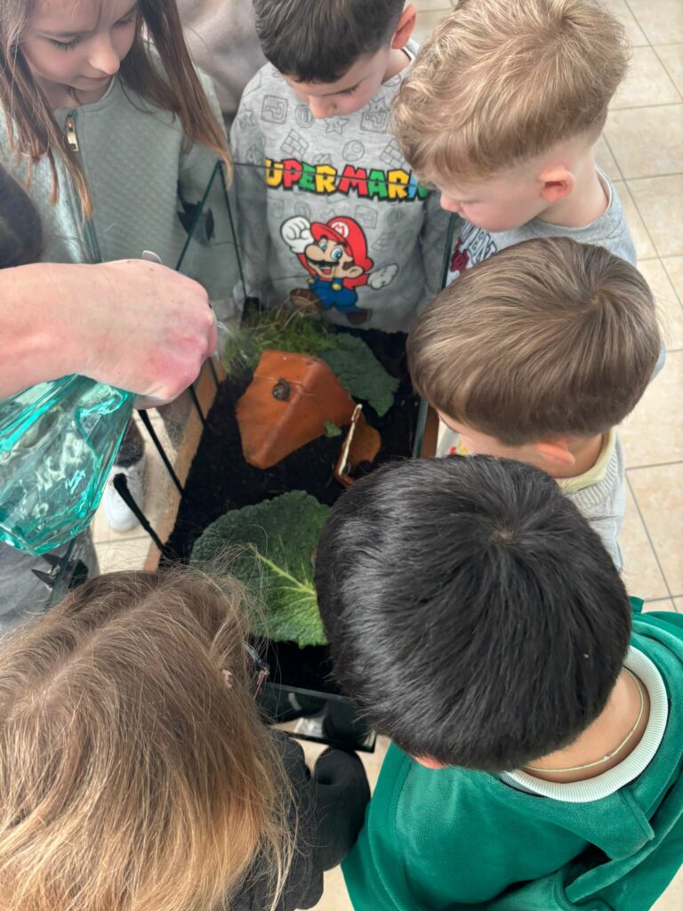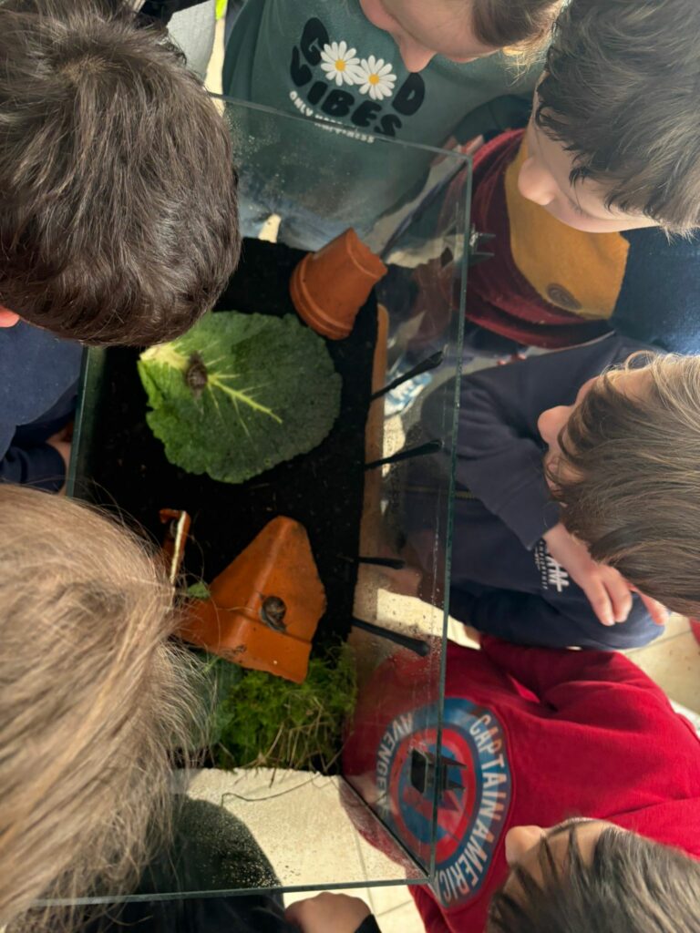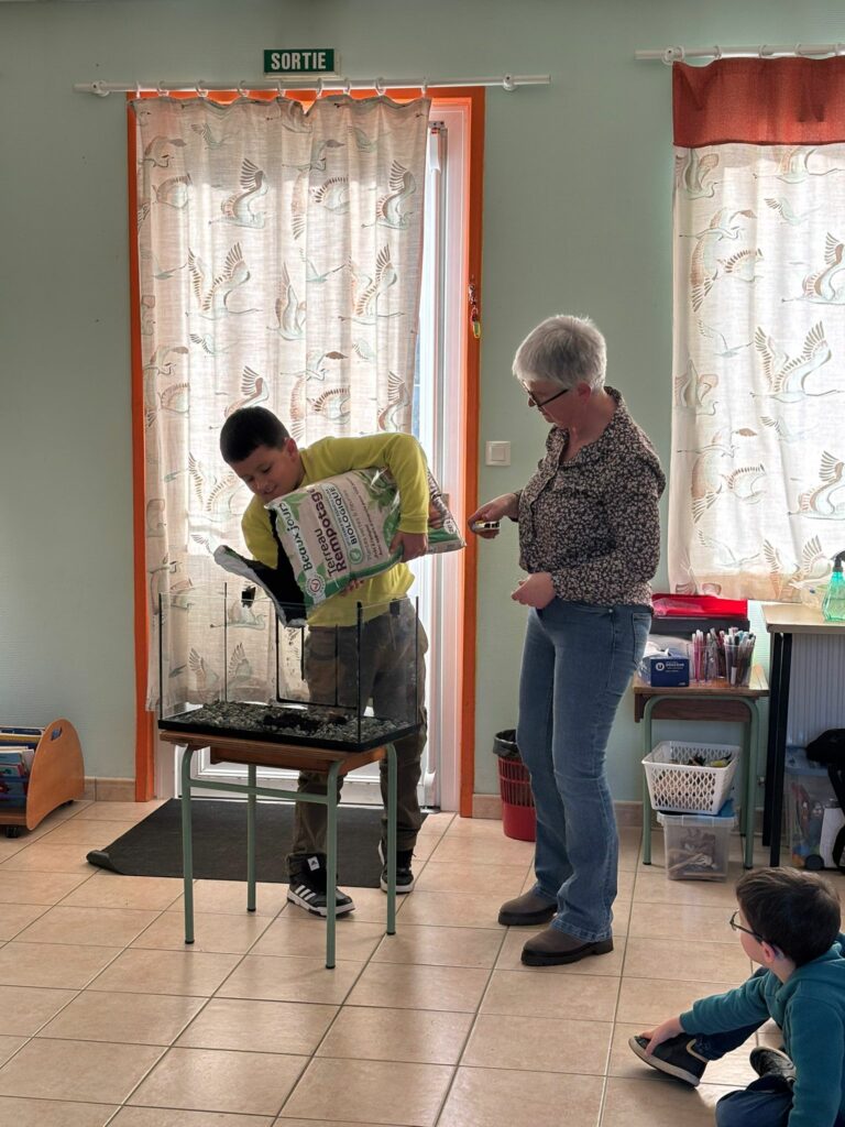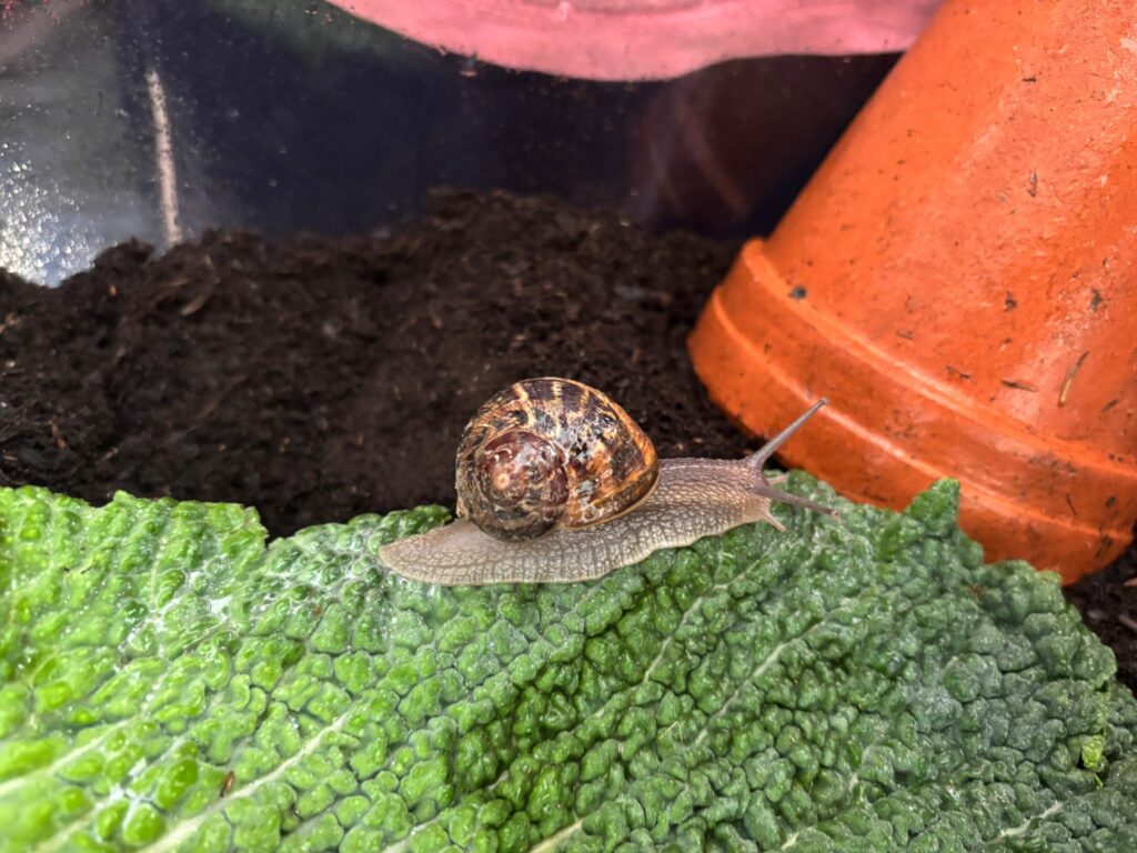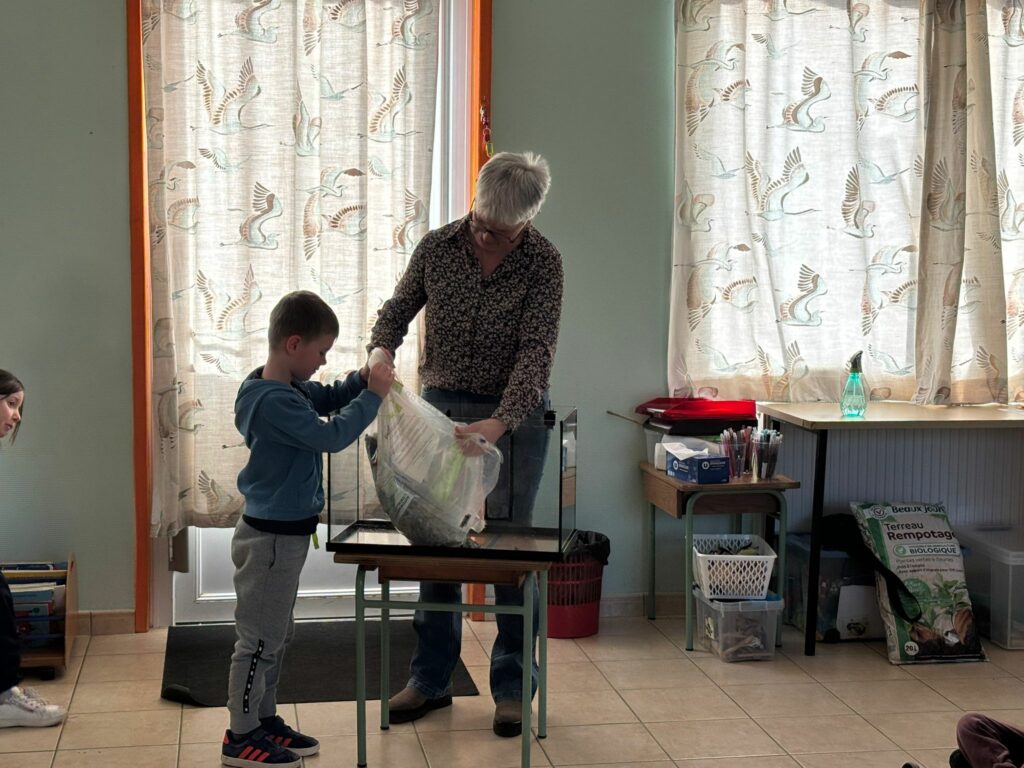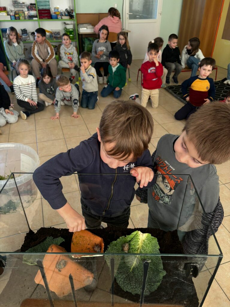 En attendant, nous avons mis en place une escargotière. Nous avons pour l’instant 3 locataires… mais les enfants vont partir à la recherche de nouveaux copains pour nos escargots.
